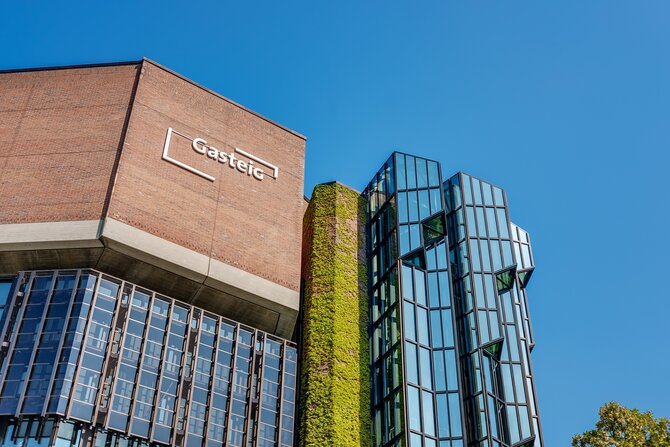 Les premiers projets pour un nouveau centre culturel on commencé en 1955 après la destruction du centre culturel de Munich le plus important. Le projet a été réalisé sur les rives de l’Isar, non-loin de l’ancien Gasteig-Spital. Au début des années 1970 l’idée d’une compétition fut lancée. Le concept gagnant a été réalisé avec quelques restrictions, dues à des raisons économiques. L’ouverture du Gasteig a eu lieu en 1985. Aujourd’hui le bâtiment rassemble la Philharmonie de Munich, le conservatoire Richard-Strauß, une bibliothèque municipale et la Volkshochschule. La diversité des salles que présente le Gasteig : la großer Konzertsaal (grande salle de concert), kleiner Konzertsall (petite salle de concert), la Carl-Orff-Saal et la Black Box, permettent d’accueillir toutes sortes d’évènement. Musique classique ou musique moderne, théâtre, conférences, lecture, festival de musique ou encore danse son accueilli sur les scènes du Gasteig. Le Gasteig abrite également différents évènements comme comme le salon du livre de Munich, un festival de cinéma et la journée de la culture juive. Son architecture ouverte ainsi que les divers évènements qu’il accueil font du Gasteig le centre culturel le plus important de Munich.