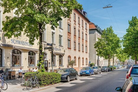 L'ancien quartier des artistes de Schwabing, avec ses beaux immeubles anciens entre lesquels se trouvent quelques bâtiments d'après-guerre moins attrayants, est particulièrement apprécié des étudiants, surtout en raison de sa proximité avec l'université. De nombreux avocats, assureurs et médecins y ont une adresse représentative.