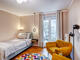 Cet appartement récemment réaménagé séduit par son lit boxspring (Cocoon) d'un confort divin et ses deux fauteuils lounge élégants de Pooom, complétés par une table d'appoint raffinée de Kartell et des lampes design de Flos. Dans la salle de bains, une armoire de toilette éclairée avec miroir chauffant intégré assure un confort optimal. Le balcon offre une vue agréable sur la cour intérieure paisible. Des détails pratiques tels que des prises USB dans la cuisine et près du lit, ainsi qu'une armoire spacieuse dans le couloir, offrent un confort supplémentaire et un espace de rangement. La cuisine existante a été agrémentée avec style de nouvelles chaises de salle à manger pivotantes en velours, d'une table de salle à manger design en bois et d'un éclairage moderne, en partie avec des prises USB intégrées.
