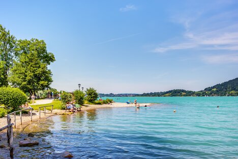 Le lac Tegernsee est l'un des lacs les plus propres d'Allemagne et est très populaire. Cela est particulièrement visible lorsque le soleil brille à la surface de l'eau et que le lac entier commence à scintiller.
